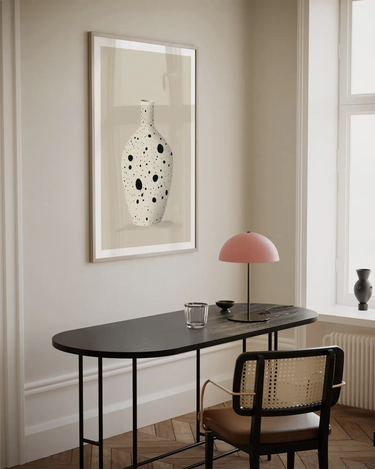 Postern är tryckt med en vit marginal runt bilden för att snyggt rama in designen.